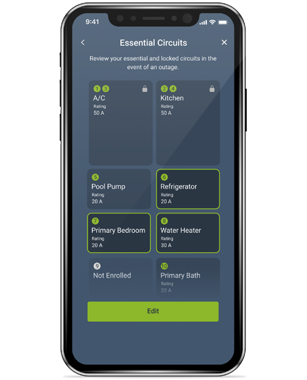 En lugar de instalar un panel de cargas esenciales secundario para alimentar circuitos críticos desde un generador, la aplicación My Leviton proporciona una interfaz donde los usuarios pueden cambiar sus circuitos esenciales y no esenciales en cualquier momento, sin necesidad de recableado. El monitor de energía para todo el hogar se integra con los interruptores de transferencia automática a través de la interfaz de contacto y elimina automáticamente las cargas no esenciales cuando falla la alimentación de la red.